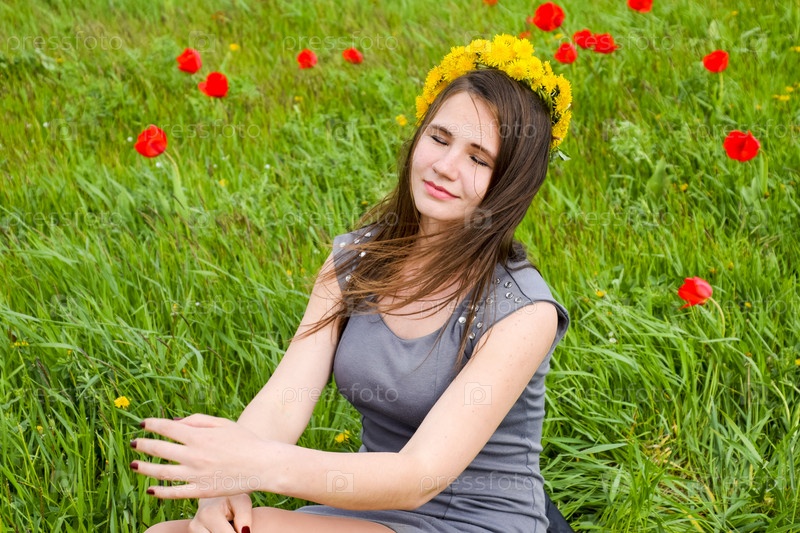 Красивая фея маленькая девочка в поле среди цветов тюльпана
