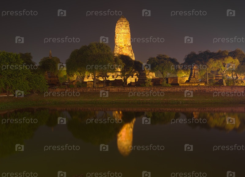Храм Ват Пхра Рам ночью в Аютайе