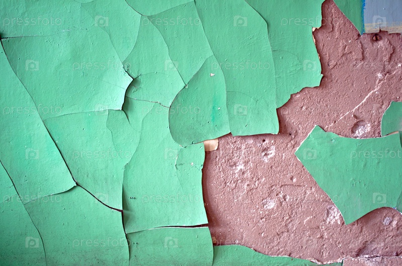 Фрагмент старой стены в заброшенной комнате с облупившейся краской