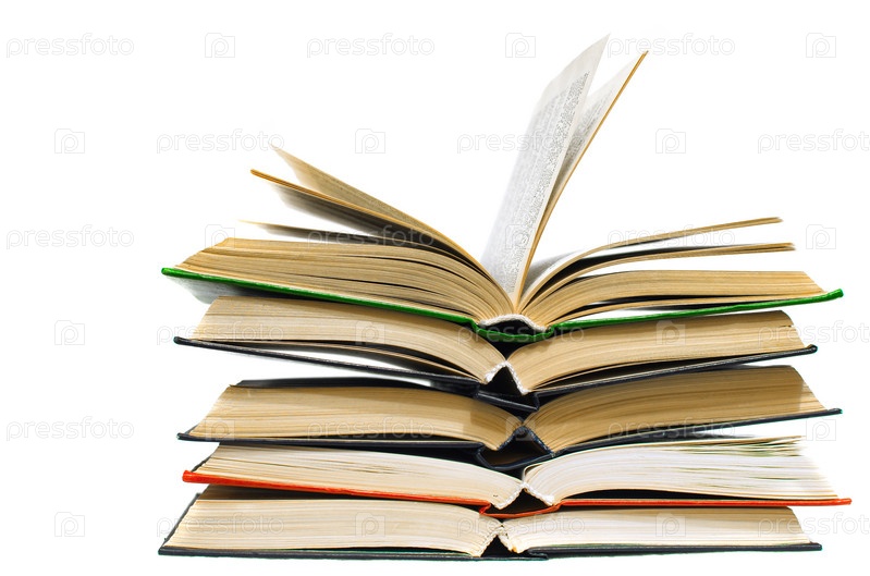 Толстая стопка открытых книг