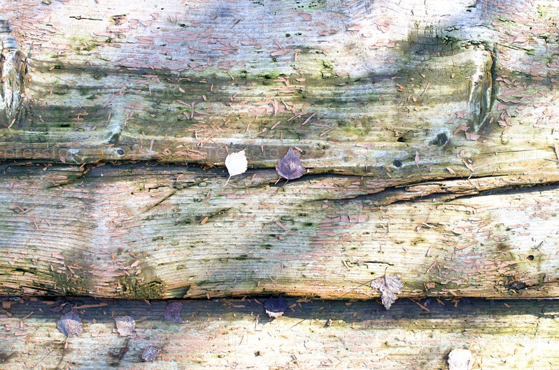 Старые полуистлевшие доски и осенние листья-фоновое изображение