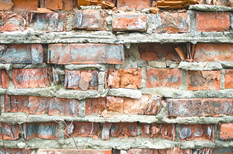 Старая крошащаяся и обветренная кирпичная кладка, покрытая трещинами — фоновое изображение