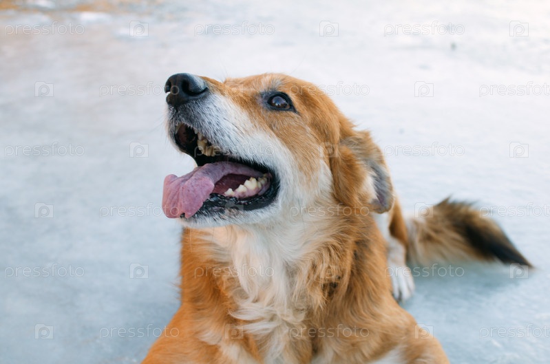 Портрет собаки с рыжевато-золотой шерстью и высунутым языком