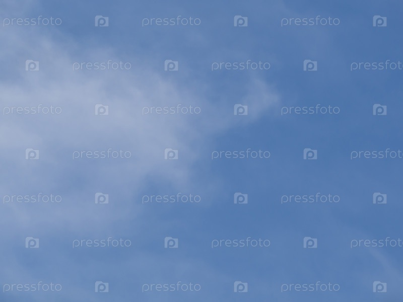 Летнее голубое небо и белое облако на заднем плане. Красивые прозрачные облака в солнечном свете в спокойное время года