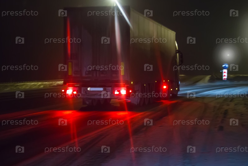 Грузовик движется по зимнику