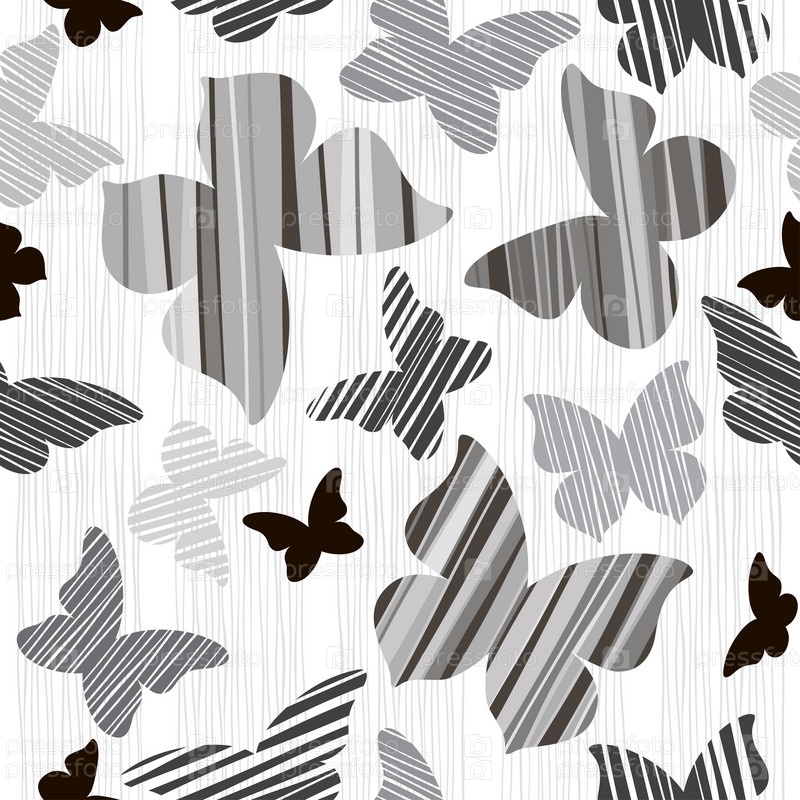 Монохромный бесшовный фон с бабочками