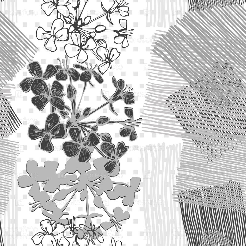 Монохромный бесшовный узор из цветов. Ручной обращается цветочный фон