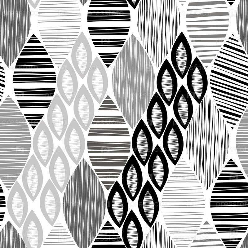 Бесшовный монохромный рисунок с полосатыми абстрактными листьями