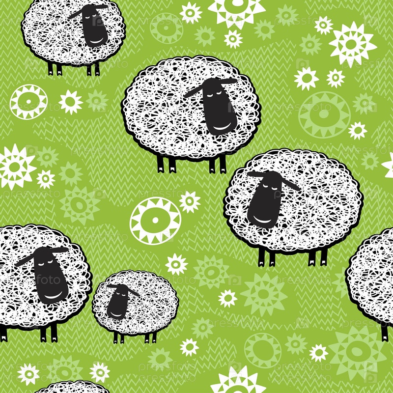 Бесшовный рисунок с мультяшными овцами. Детский векторный фон