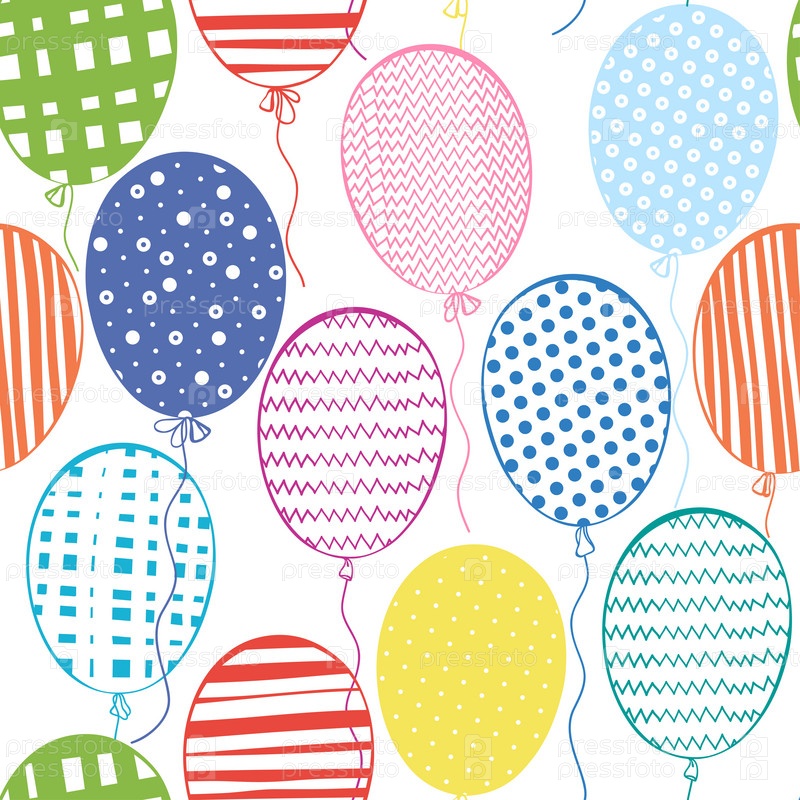 Бесшовный фон с разноцветными воздушными шарами. Ручной рисунок фона