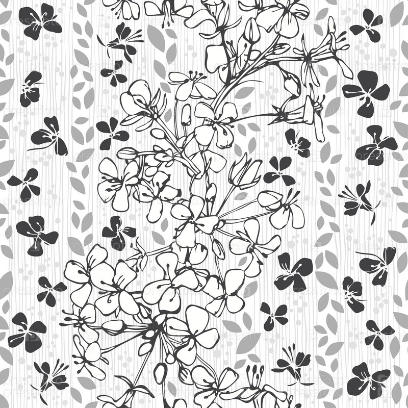 Цветочный абстрактный бесшовный узор. Ручная черно-белая векторная иллюстрация