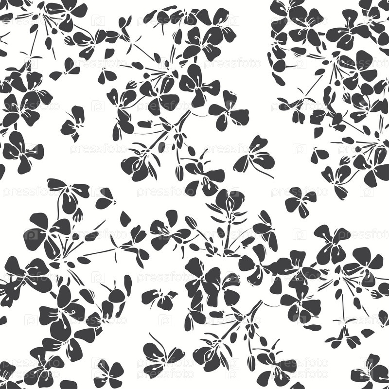 Цветочный бесшовный узор. Ручная черно-белая векторная иллюстрация
