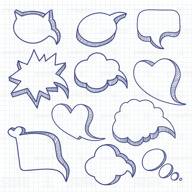Набор нарисованных вручную речевых пузырей