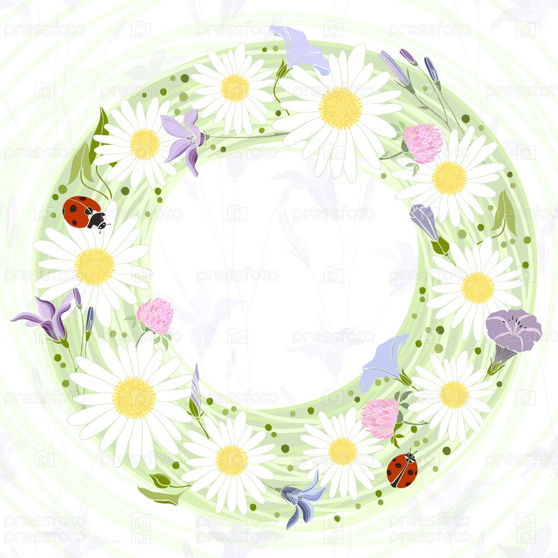 Векторная цветочная рамка. Иллюстрация с цветочным венком и местом для текста может быть использована для создания открытки или пригласительного билета