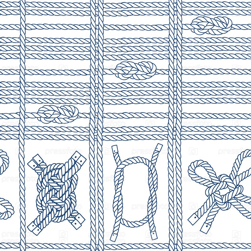 Бесшовный рисунок с морской веревкой и узлами на белом фоне