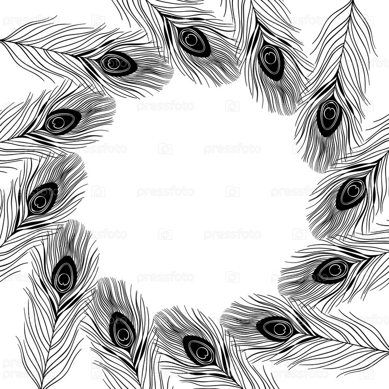 Векторная рамка с павлиньими перьями и местом для текста. Может использоваться для создания открытки или пригласительного билета