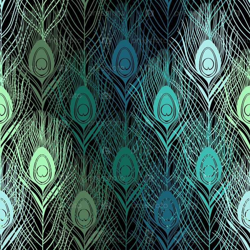 Бесшовный рисунок с павлиньими перьями. Ручной рисунок векторного фона