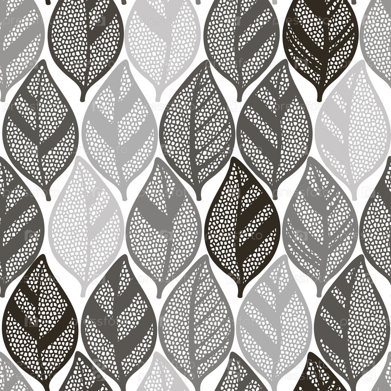 Бесшовный монохромный рисунок с полосатыми абстрактными листьями