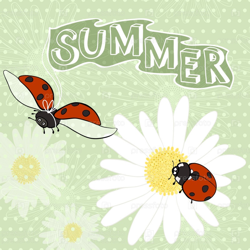 Летний мультяшный фон с божьими коровками