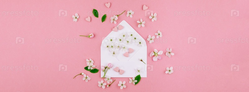 Концепция любовного письма с конвертом и цветами