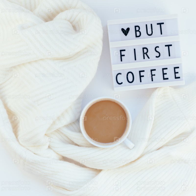 Но первый текст о кофе на лайтбоксе с чашкой кофе