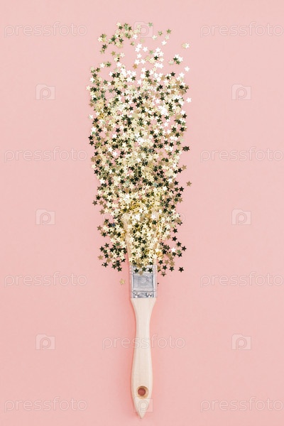 Сюрреалистичная кисть рисует конфетти золотыми звездами