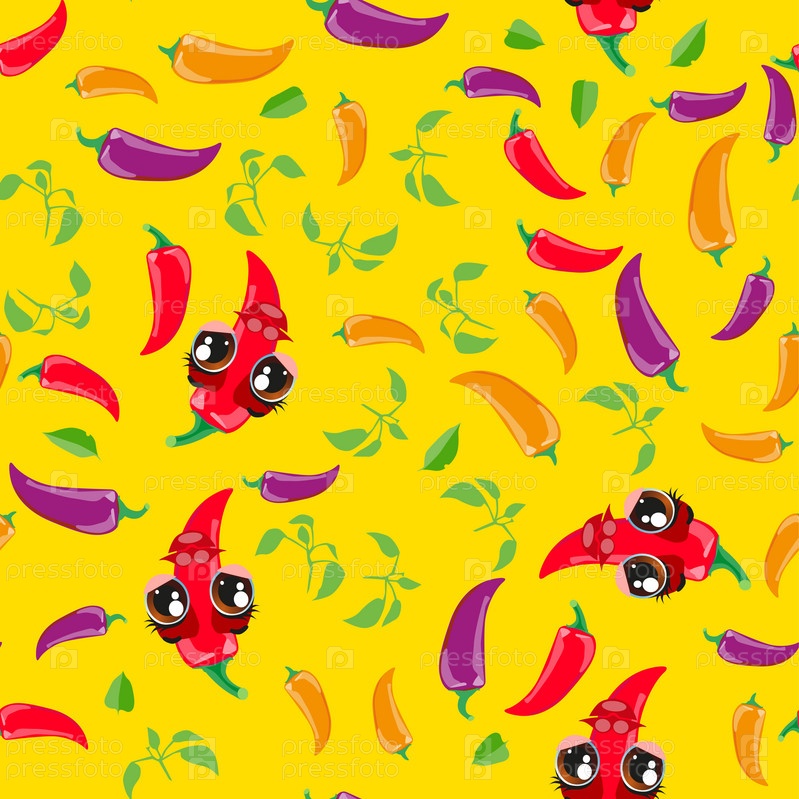 Бесшовный фон Перец чили. Смешные милые лица персонажей