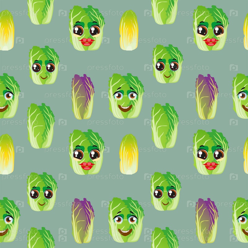 Бесшовный фон Китайская капуста. Смешные милые лица персонажей