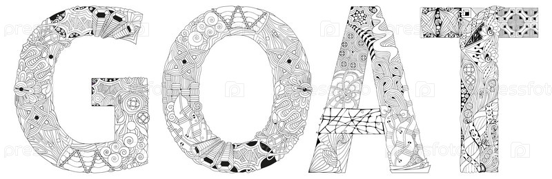 Художественный дизайн ручной росписи.Ручное изображение слова GOAT для окраски, футболки и других украшений