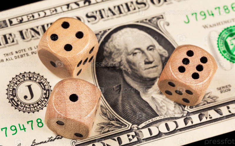 Кости на фоне однодолларовой купюры