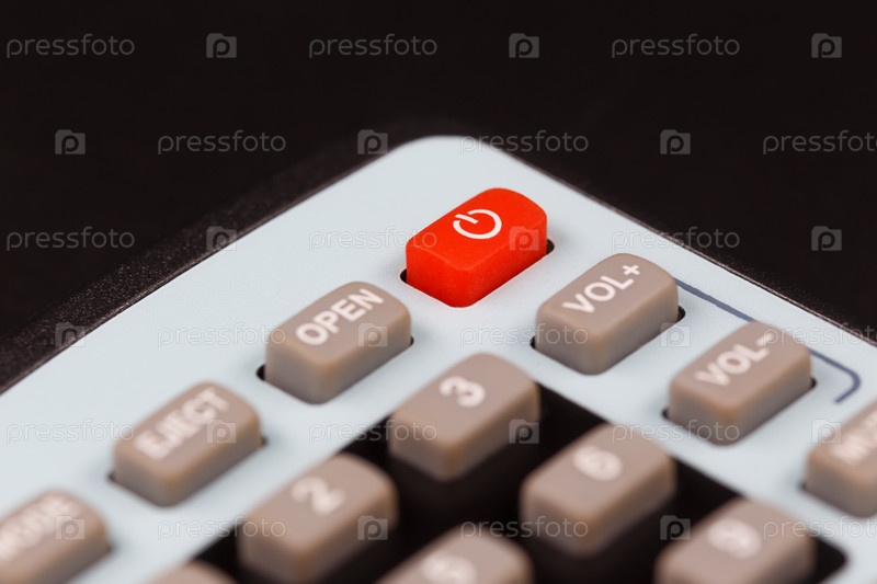 Красная кнопка включения/выключения на пульте дистанционного управления крупным планом