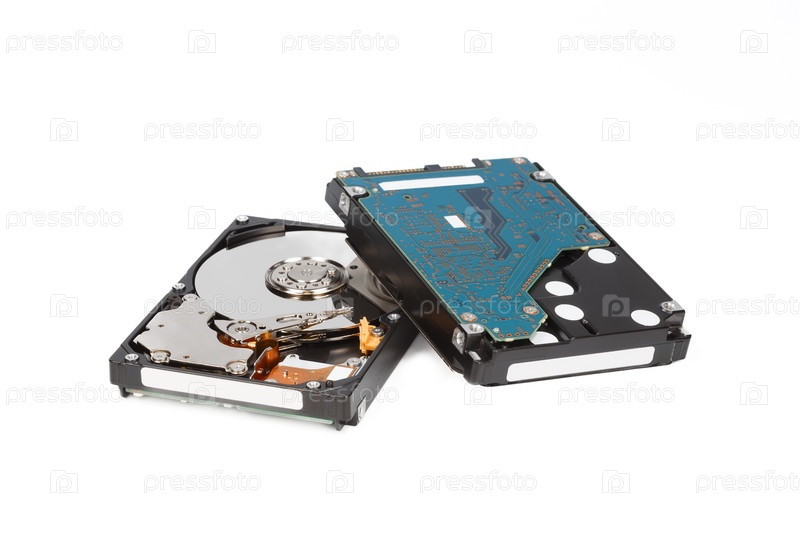 Два жестких диска, передняя и задняя стороны, на белом фоне крупным планом