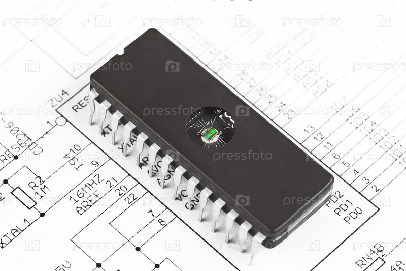 На принципиальной схеме лежит перепрограммируемая микросхема с электрической записью и УФ-стиранием