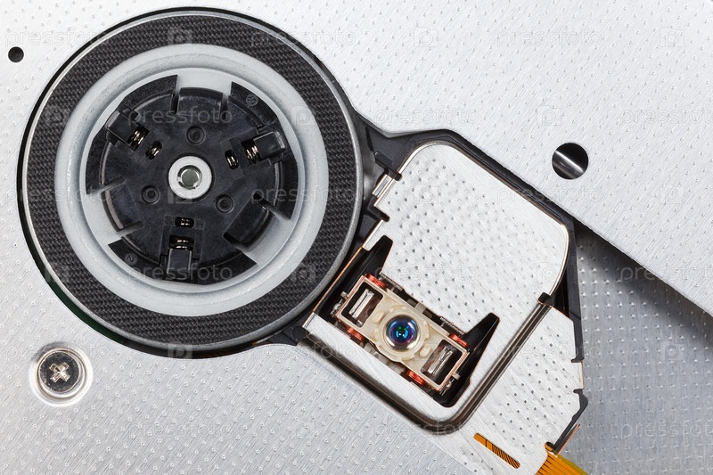 Внутренняя структура оптического дисковода. Мотор-шпиндель и лазерная головка. макросъемка