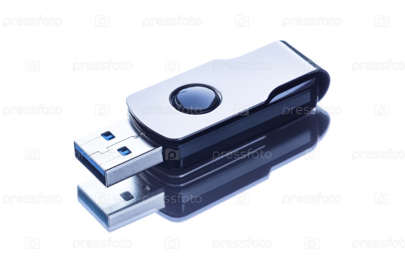 Флешка на светлой зеркальной поверхности с отражением