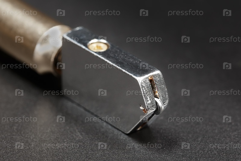 Стеклорезная головка с режущим роликом, крупным планом на темном фоне