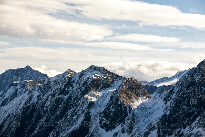 Прекрасный вид на горы Альп в солнечный зимний день, Австрия, Штубай, курорт Штубайер Глетшер