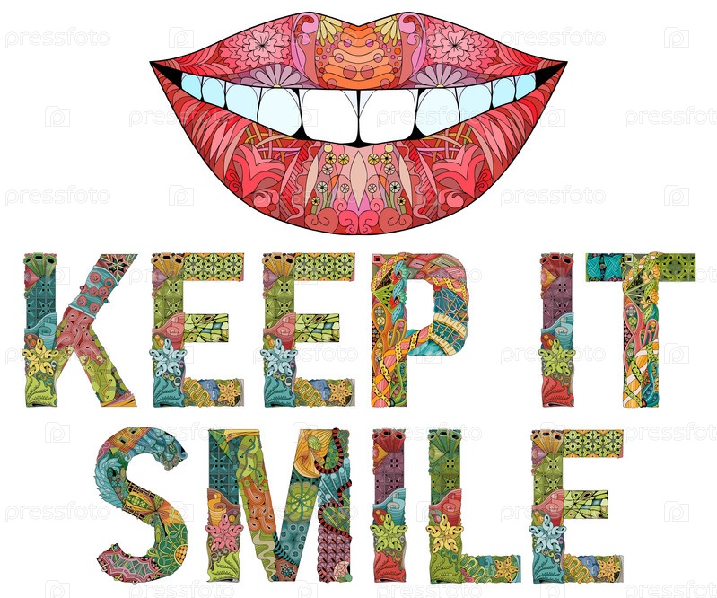 Художественный дизайн ручной росписи.Ручно нарисованные слова иллюстрации KEEP IT SMILE с силуэтом губ для футболки и других украшений