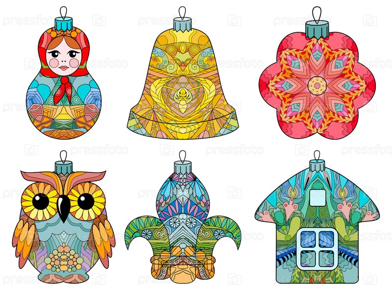 Zentangle стилизованный рождественский набор украшений. ручной рисунок векторного кружева
