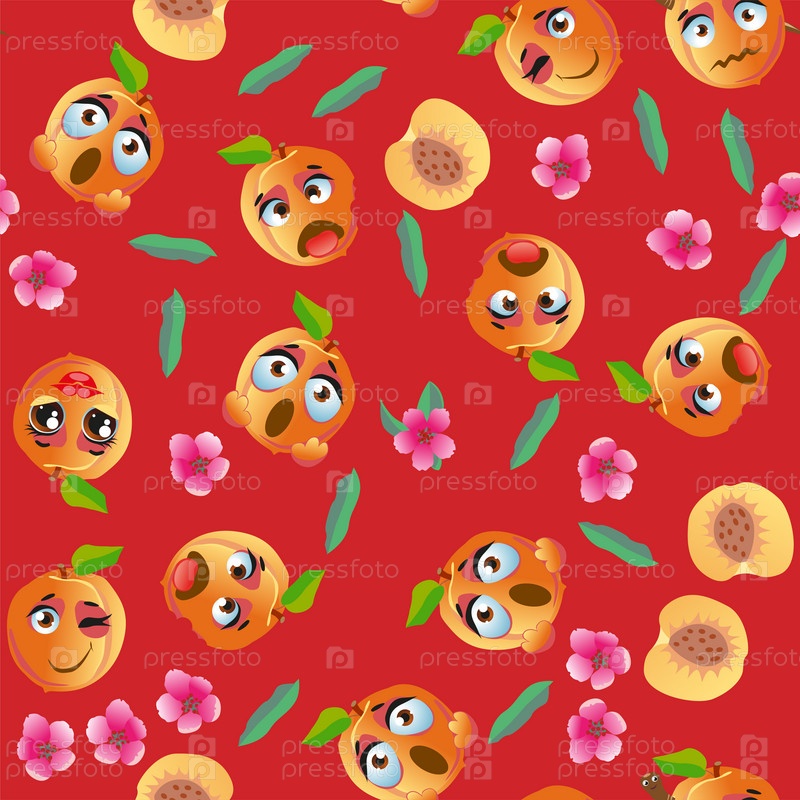 Бесшовный рисунок с персиками смайликов. Смешные милые лица персонажей