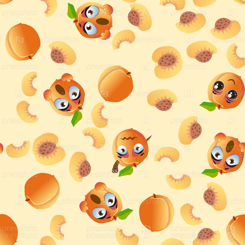 Бесшовный рисунок с персиками смайликов. Смешные милые лица персонажей