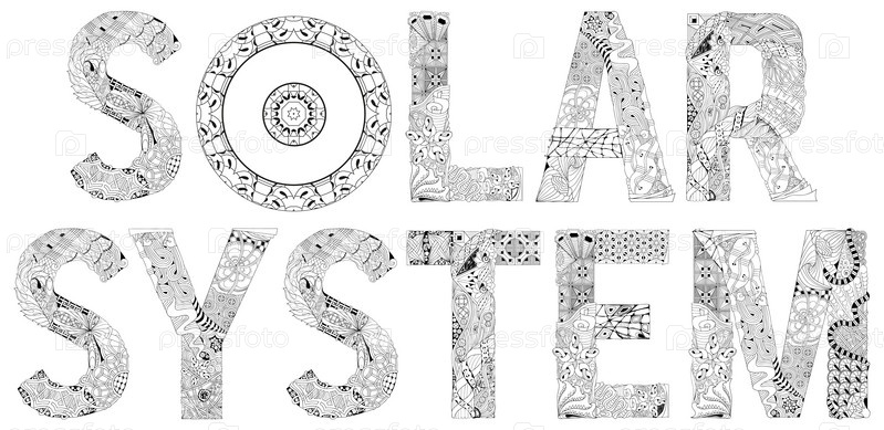 Художественный дизайн ручной росписи. Нарисованные вручную слова иллюстрации Солнечная система со знаком Солнца для футболки и других украшений