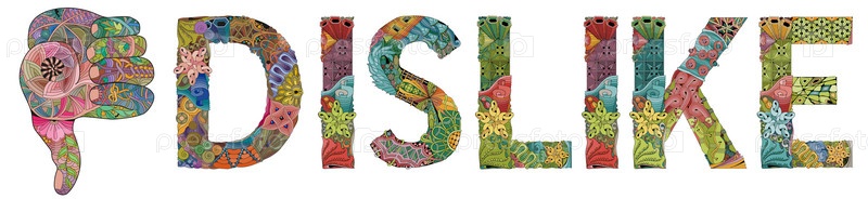 Стилизованная рука Zentangle показывает значок цвета линии со словом DISLIKE