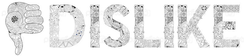 Стилизованная рука Zentangle поднимает значок цвета линии со словом DISLIKE для окраски
