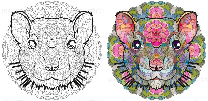Zentangle стилизованная крысая голова на круглом орнаменте. векторная иллюстрация ручной работы для окраски