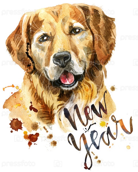 Акварельный портрет золотистого ретривера