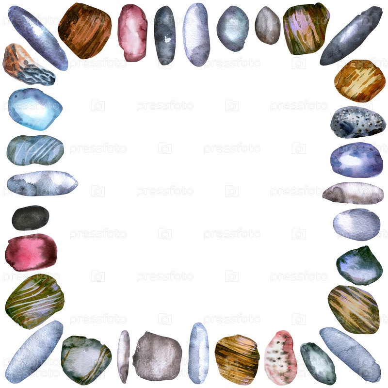 Ручной обращается изолированный красочный квадрат камней на белом фоне