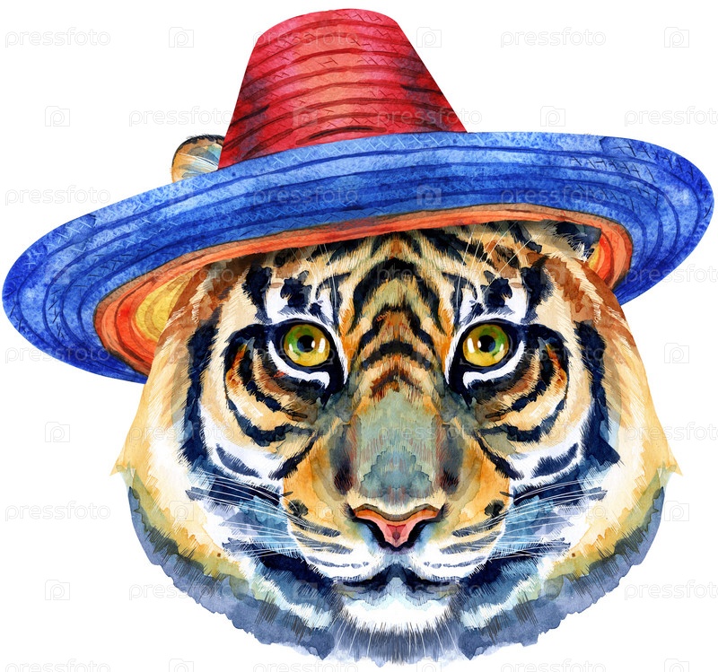 Персонаж гороскопа головы тигра в шляпе сомбреро на белом фоне