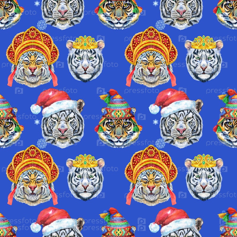 Бесшовный узор с изображением морды тигра. Декор для украшения текстиля или обоев