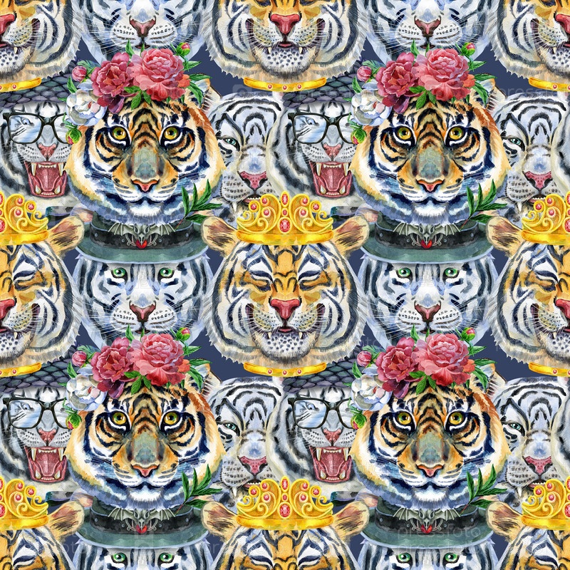 Бесшовный узор с изображением морды тигра. Декор для украшения текстиля или обоев